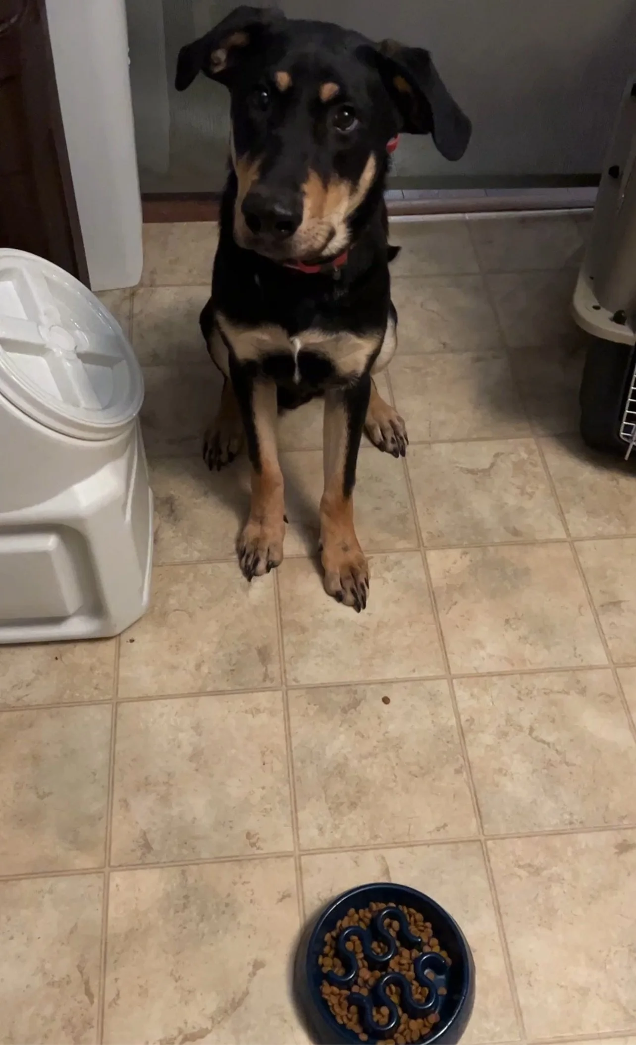 <— Gunner waiting patiently for his food.
